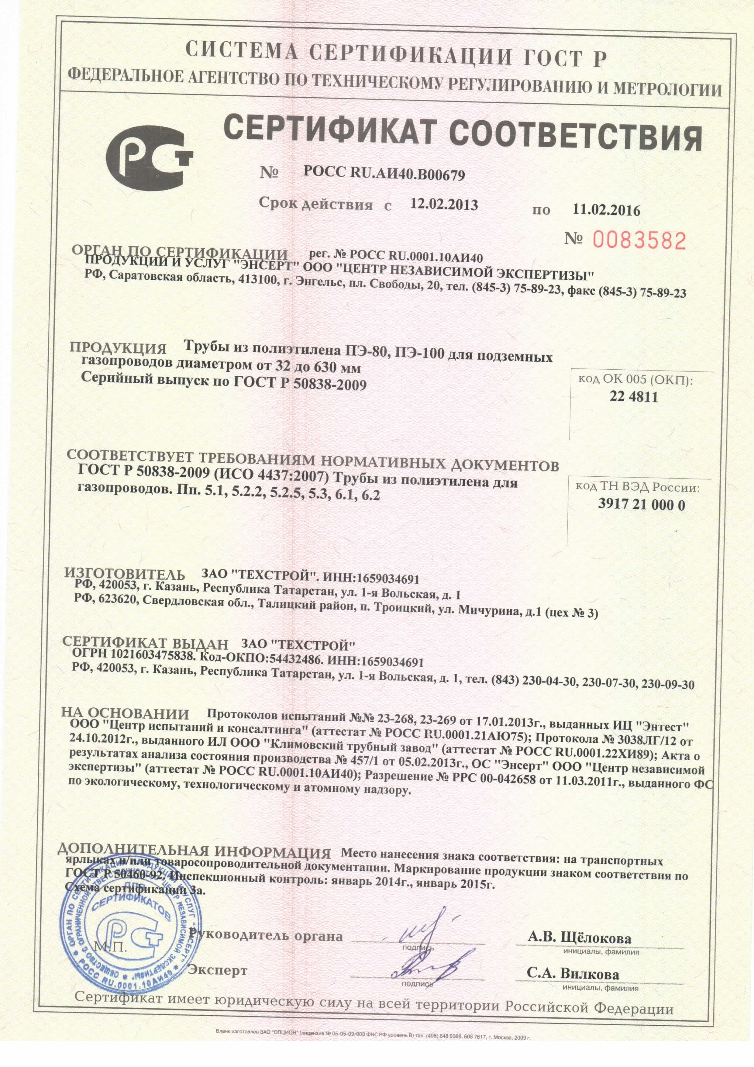 Сертификат труба ПНД техническая безнапорная АОС 2025-2028